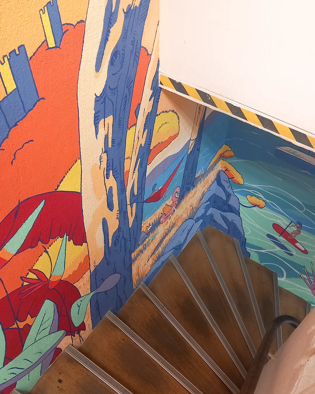 Par cette nouvelle fresque, les escaliers deviennent, le temps du parcours, une interlude poétique et colorée invitant au voyage tout en mettant en valeur le patrimoine local.